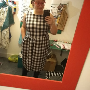 2 xSew Many Dresses Sew Little Time dresses finished from batch sewing adventures (gingham, animal map print)